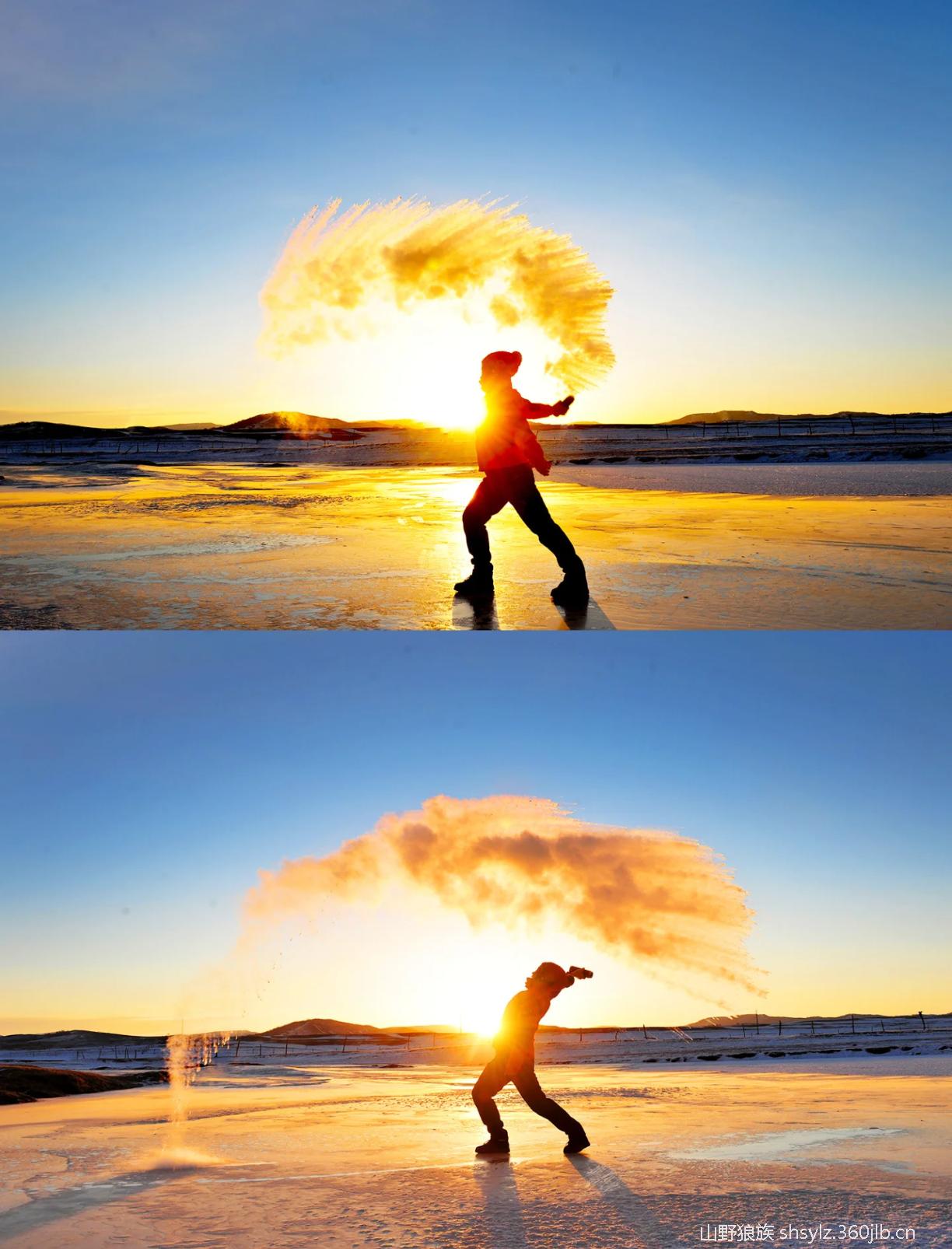 今天早起前往【小河头村】看日出,冬日的小河头依然有活水流淌,冰上有河柳灌木被冰雪覆盖,河水鼓泡冻成的冰花是这里的一绝,早晚雾气升起,极易形成雾凇。在这里感受冬季草原日出的壮丽,你可以看到雪中挺拔的白桦林,蜿蜒河流中洁白的雪馒头,小河头村风光、羊群出牧,你可以用手中的相机,定格冬季坝上的雪域风光。拿出准备好的保温杯,挑战【泼水成冰】,小伙伴们用手机拍下这神奇的一刻。