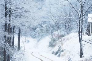 深雪铺满寂静山谷。